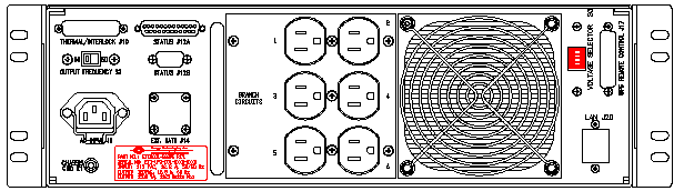 The rear panel provides locking connectors for the inputand output power with various optional configurations available. Thetwo Status connectors provide an interface with optional computer softwareproviding loss of AC and low battery status as well as remote shut downcapability.